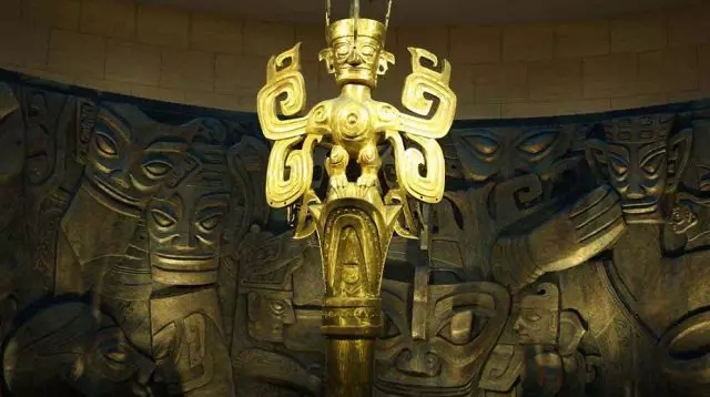 灯光下,金属质感的雕像,宛若回到神秘的图腾时代