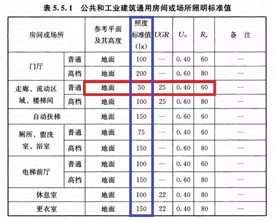比如走廊的地面,照度不能低于50lx