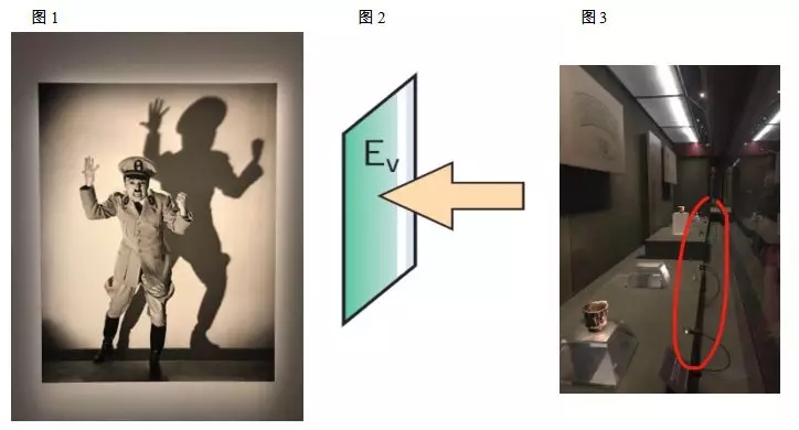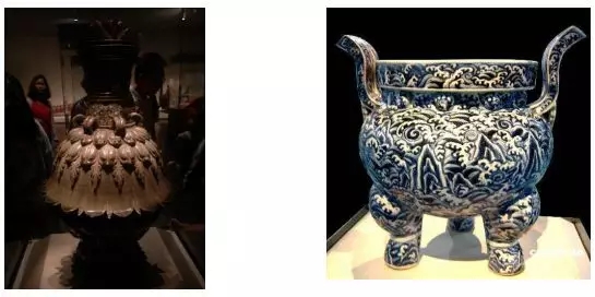左图:瓷器下半分暗阴遮档到展品可视面时导致很难看清细节。