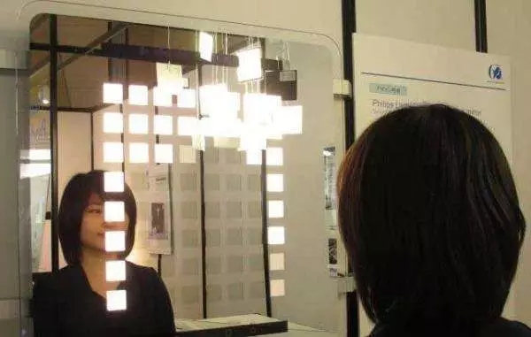 感知人体并作出相应的反应,随着人们的移动,将人体所在的位置以灯光的形式表现出来,而不单单只拥有镜子的功能。其实质是光源加感应控制,除OLED外,普通LED灯具也能实现: