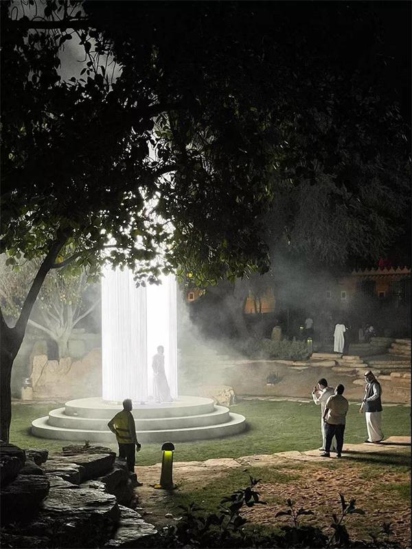 装置仿佛是一束连接天与地之间的一道光束,像是来自电影里一般的场景。当人们置身其中,就像是来自外太空一样。