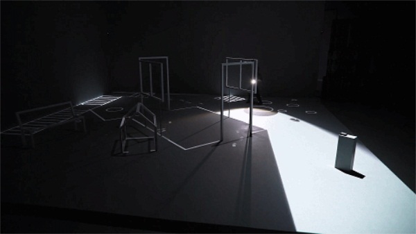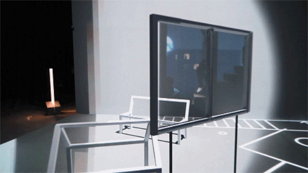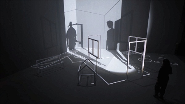 交互装置将影子投射在10 x 10m地板和6m高墙的舞台上。装置将门窗、墙壁、椅子等结构投射出来,创造出与现实不同的虚拟空间。当观众透过房间里的窗户向外看时间,可以观察到色彩的世界及其真实感。